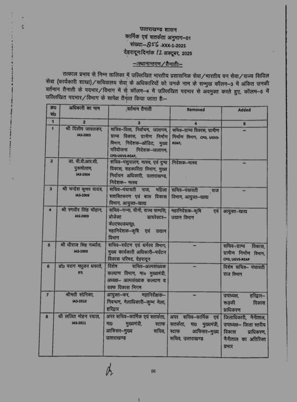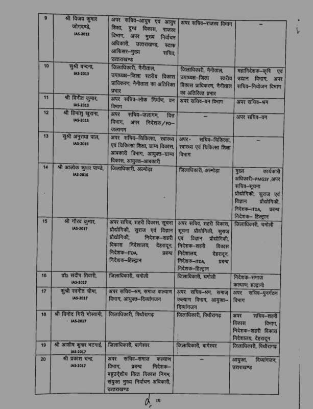 उत्तराखंड में कई आईएएस अधिकारियों के तबादले, नैनीताल में भी नए डीएम की तैनाती